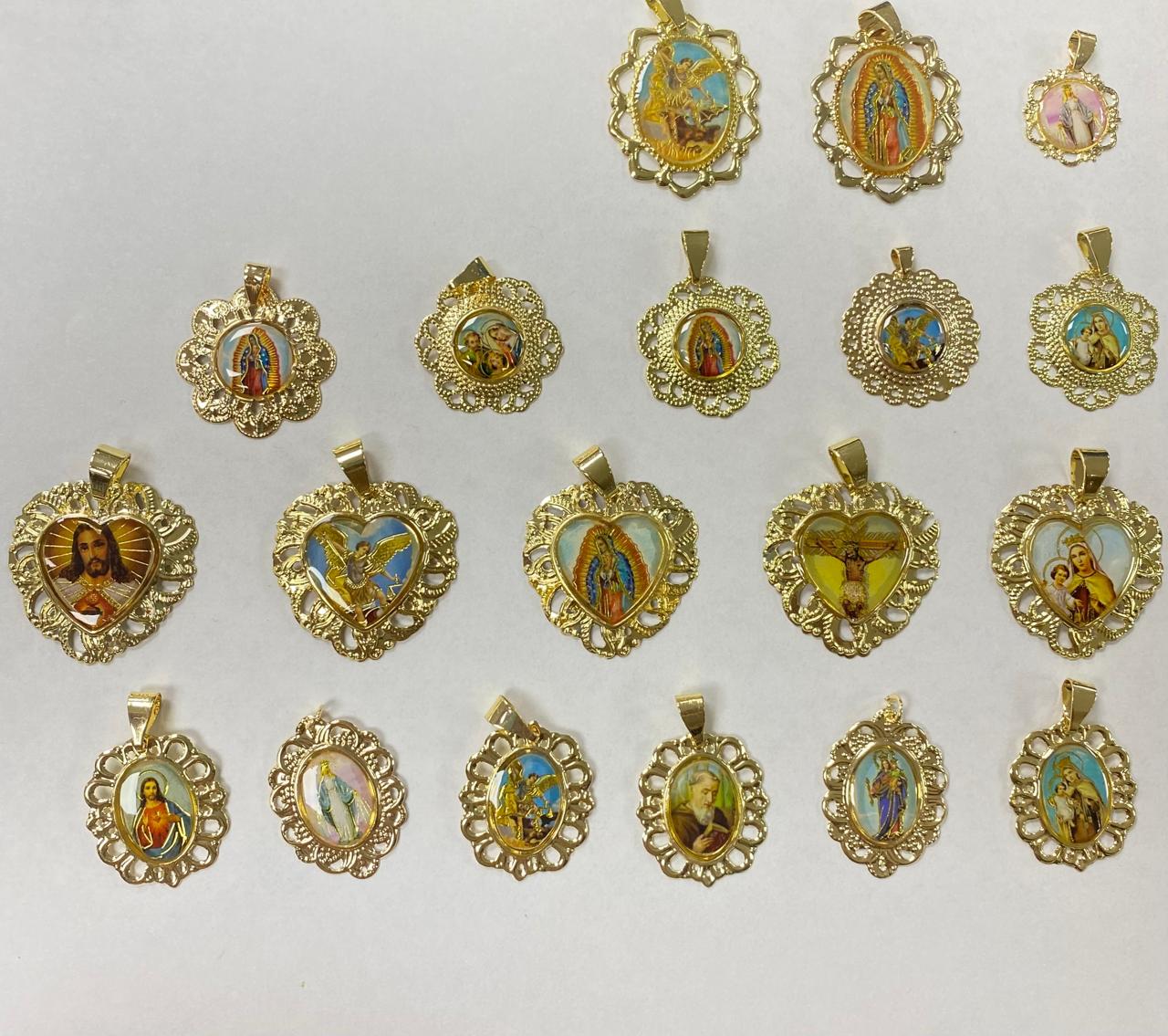 Dijes religiosos metalicos y resina