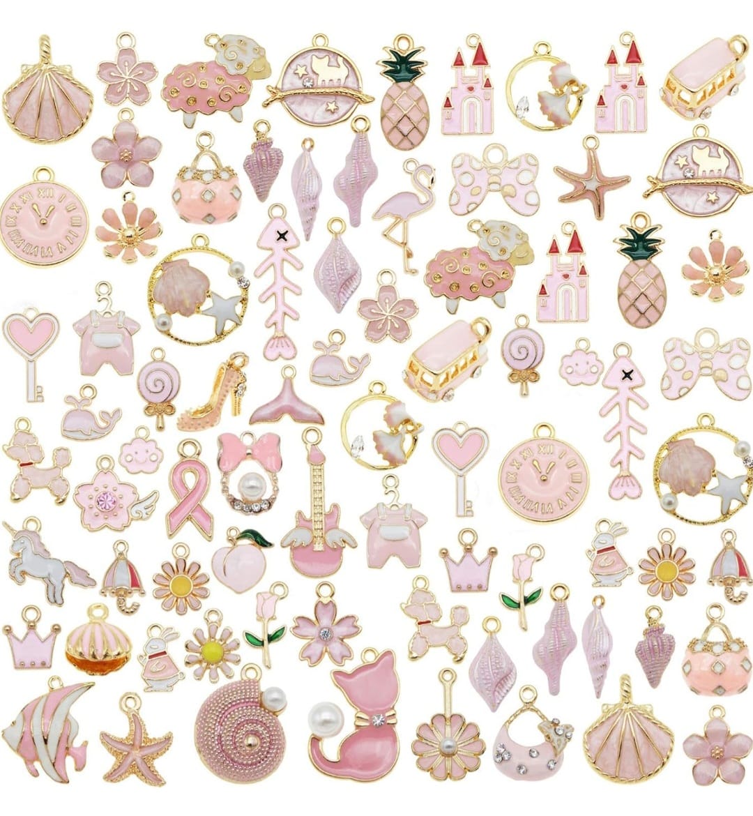 Dijes surtidos baño en oro esmaltados delicados colgantes para hacer joyas, collares, pulseras, tema rosa, Zinc, No es una piedra preciosa